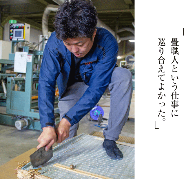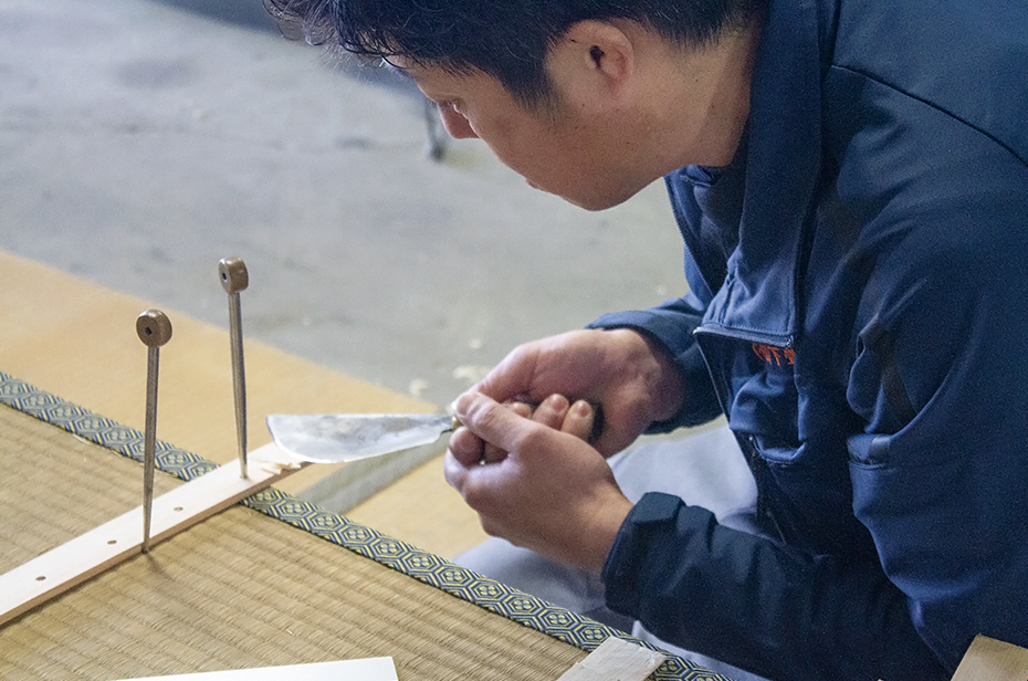 畳作りは前段階の仕事が後にどんどん積み重なってくるような作業の連続なので、どこかで妥協してしまったら後から必ずそのしわ寄せが来ます。だからこそ、どの段階でもできるだけのことは必ずしておく。後は自分の今の仕事に満足しないということですよね。伝統工芸士さんはきっとみなさんそうじゃないですか。自分の苦手なところ、うまくいかなかったことを毎度振り返って、次に繋げていく。常に勉強ですよね。