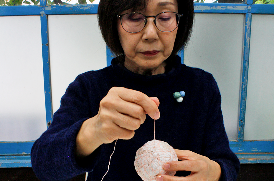 荒木)小さいものや手仕事には元々興味がありました。嫁ぎ先の義母が手まりを作っていて、その素朴な風合いと柔らかな色合いに惹かれました。本当におしゃれで素敵だなと思って。そこから夢中になって手伝いを始めて、2年後ぐらいから自分でも文様を作るようになりました。厳しくはなかったですが口伝なので、聞いて、完成品を見て、と自分なりに作り方を解明していきました。