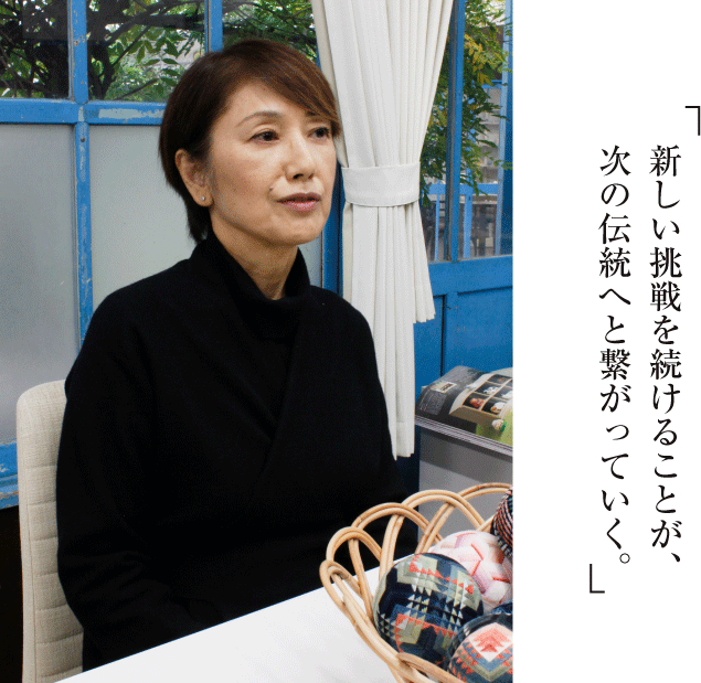 荒木)思い出深い仕事は、匂い袋にヒントを得て手まりの芯にお香の原料を入れた香手まりシリーズを作ったことです。色々なメディアで紹介され、今なおロングセラーなのが嬉しいですね。これからは伝統技術を高めながらも、アートやインテリアといった分野まで広げて、手まりの新しい世界を表現していきたいです。そうした挑戦を続けていくことが次の伝統に繋がっていくんだと思います。