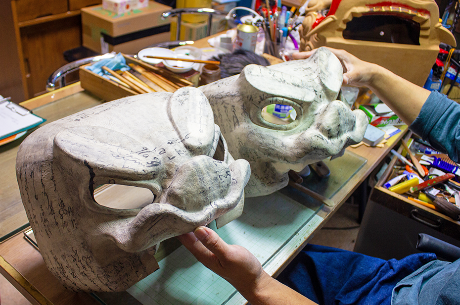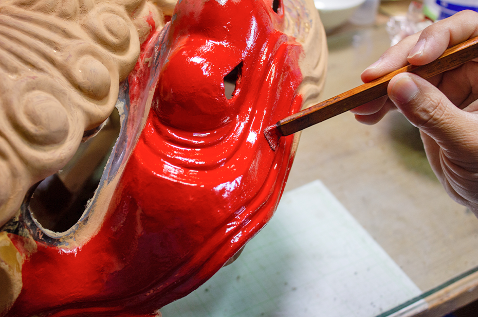 小学生の頃から「お師匠はん(伝統工芸士だった故・松下芳夫氏)」の工房に入り浸って、フリーハンドで描く曲線に惚れぼれしていました。自分もいつか職人になりたいと懇願し、「5年は飯が食えん」と言われながらもようやく弟子入り。獅子頭は張子製なので、まず粘土の型を作らないといけません。粘土の先生にも付きながら手伝いから始めました。何年か経ったある時、師匠に「ほな、これ頼むわ」と言われ、認めてもらえたんだなと思いました。