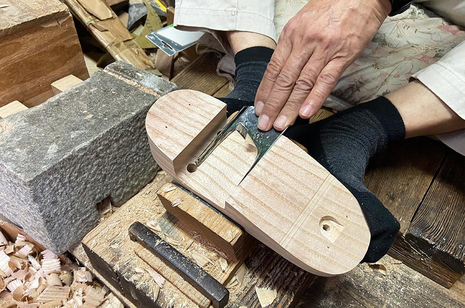 下駄は誕生した時からずっと基本設計が変わっていません。例えば歯の位置を変えるとバランスが悪くなり歩けません。ですから、新たにデザインするとしても、そういった基本、変えてはいけない部分は頑なに守っています。技術についても同様です。技術を積み重ねてより良いものを作る努力はしてきましたが、明治時代から受け継がれている加工の仕方そのものは変えることなく継承しています。