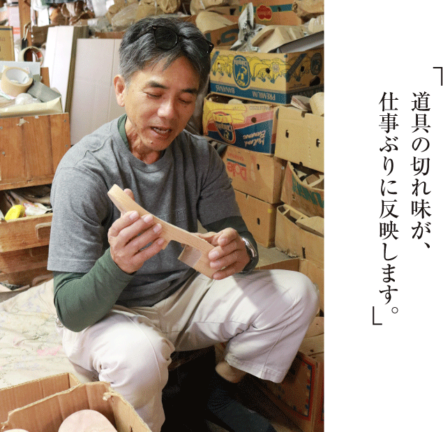 穏やかな語り口でいつも物腰柔らかな山西さんだが、仕事となると「基本に忠実に、道具を大事に、効率よく」と実に職人らしい。志度の桐下駄は、いち早い規格化や流行型の研究開発など、産地一丸となって品質向上が図られてきた歴史をもつ。昭和の「下駄離れ」も粘り強く乗り越えてきた山西商店。数少ない製造元として“本当に良い”下駄を追求していく。